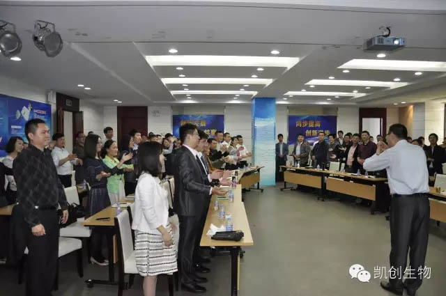 2016年4月14日迎來首屆《上海凱創生物精英培訓班》順利召開!本次培訓班由我公司商務部經理黃建明全程主持。首先,我公司董事長張國華先生致開幕歡迎詞。此次培訓先從凱創的發展史開始,詳細介紹公司特色產品,并由各大區經理帶領學員們參觀我司100000級潔凈廠房、先進設備、行政區域等。學員們反響熱烈,上午課程臨近結束張國華董事長親自為學員們頒發《Poc現場醫護現狀和進展》作為獎勵。
